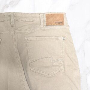 Mavi men's Steve Athletic Tapered jeans in a versatile light tan/khaki—a modern, comfortable fit designed for athletic builds with a higher rise, extra room in the thigh, and tapered leg from the knee down for a streamlined look. Crafted from a durable cotton blend with stretch for all-day ease, featuring classic 5-pocket styling, button/zip fly, and subtle whiskering for casual appeal. Perfect for everyday wear, casual outings, or pairing with tees and boots. Excellent pre-owned condition: no holes, major stains, or significant wear—just light natural fading typical of well-loved denim for authentic character. Smoke-free home—ideal for fans of premium, flattering Mavi denim. Take a look and make me an offer!