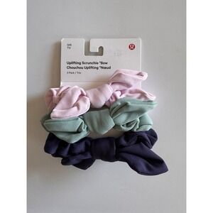 New Lululemon Uplifting Scrunchies With Bow 3 Pack Multi MEPK/RPTD/NISE Logo Nwt