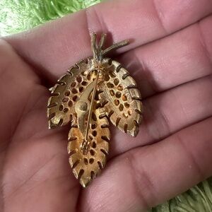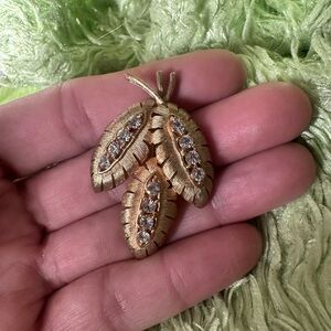 Vintage JJ Gold Tone RhinestoneLeaf Pendant