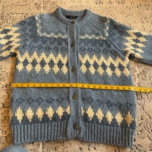 Vintage Norlender Wool Sweater. Button down the front cardigan. I did not see an inner size tag but this fits like a women’s large. I included approximate measurements in photos. 100% pure new wool. Made in Norway. Light overall pilling from wear. See pics. Priced accordingly. Same or next day shipping!