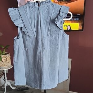 Chic light blue blouse with ruffled sleeves. Perfect for versatile styling.