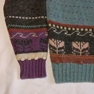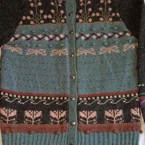 Vintage Womens 100% Scottish Shetland Wool Cottage Core Floral Bow Cardigan