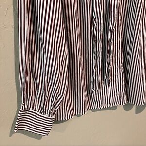 Anthropologie Maeve Tie Neck Red White Stripe Puff Long Sleeve Blouse Size Large