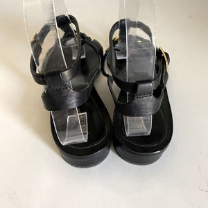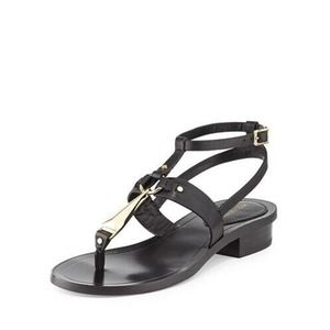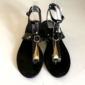 Pour La Victoire Acadia Sandal Black Leather Gold Thong Toe Ankle Strap …