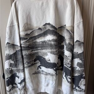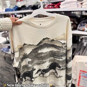This is a super trendy horse sweatshirt that went viral in the fall from target. The brand is called Goodie Too shoes and it is a size 3X. I would say this runs true to size or even on the smaller side it is not oversized.