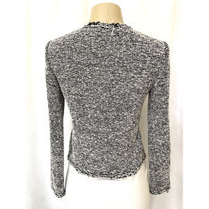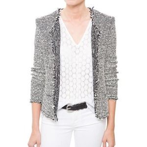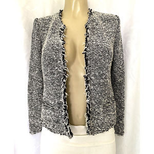 IRO Azure Tweed Boucle Open Jacket Blazer Black White Frayed Fringe Size…
