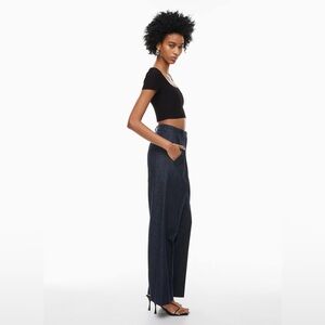 Aritzia Babaton Sculpt Knit Squareneck Top - Black Ribbed Short Sleeve Shirt