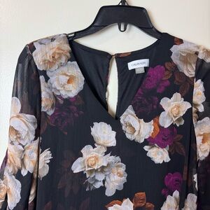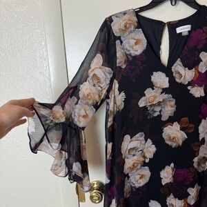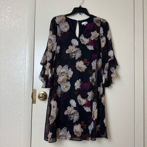 Calvin Klein V-Neck 3/4 Sleeve Crinkled Chiffon Floral Shift Dress Size 8