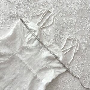 Original Post: Elegant white midi dress. Features spaghetti straps and side slit. Perfect for any occasion.