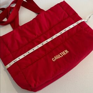 Jean Paul GAULTIER nylon puffer quilted tote bag satchel with woven straps red with gold logo/writing (gold lettering has a black mark on it- only seen upon close inspection) Jean Paul GAULTIER nylon puffer tote bag satchel with woven straps red