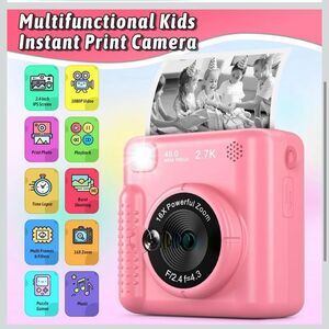 This mini camera with instant print,2.4 inch large screen,1080P video,16X the digital zoom,flash,time -lapse,continuous shooting,games,filters frame,mp3.This can meet the different needs of children. It is a good choice to accompany children to grow up happily.Bring a wonderful moment to you and your family.