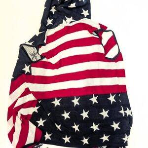 Say What? Red White & Blue USA Flag Fringe Hooded Cardigan Women's Size Medium