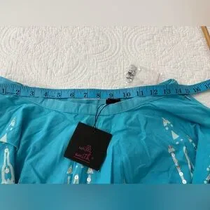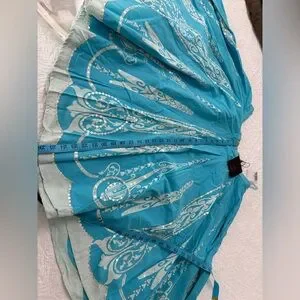 Willi Smith Turquoise A-Line Skirt with White Patterns
