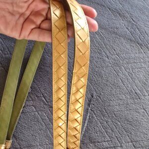 Authentic Bottega Veneta Flat Shoulder Bag - Golden Metallic Intrecciato Leather