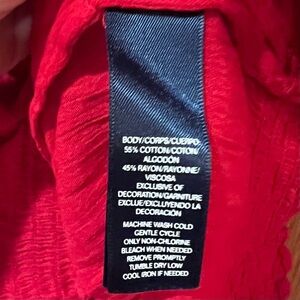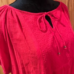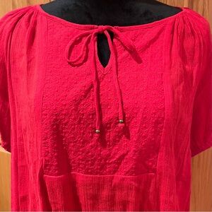 Chaps by Ralph Lauren Eyelet Tassle Tie Puff-Sleeve Peasant Top in Yacht Red XL