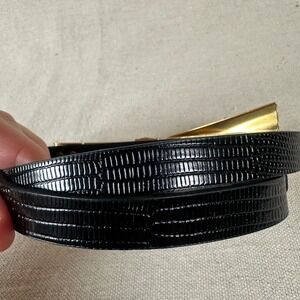 Keywords: lizard embossed, bow belt, gold buckle, statement belt, cinch belt, fashion accessory, dress belt, skirt accessory, womens fashion, adjustable belt, textured belt, chic accessory, night out, special occasion