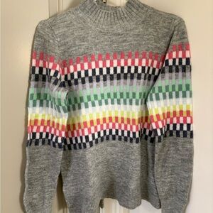 LOFT Gray Multicolor Striped Turtleneck Sweater
