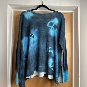 Autumn Cashmere Women’s Teal Blue Tie-Dye Sweater - 100% Cashmere. Size: Small