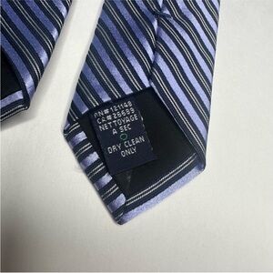 This Valentino tie is the perfect staple. With light blue and black diagonal stripes, the sheen screams luxury.