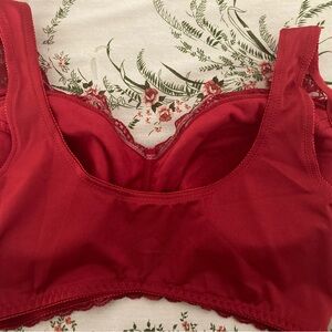 Chic red lace bra with elegant detailing. Offers comfort and support. Only worn twice. No tears, stains etc. Comes with removable pads.