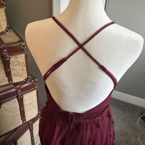 This stunning burgundy dress is perfect for any special occasion. The deep burgundy color adds a touch of elegance and sophistication. Ideal for making a statement at any event (even on vacation!)