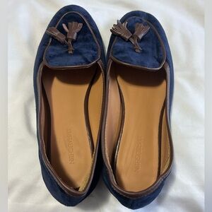 J. McLaughlin Cecily Preppy Navy Velvet Loafers with Brown Tassels