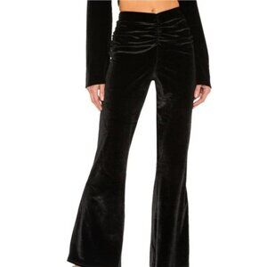 Michael Costello x Revolve Velvet Black Ruched Flare Pants Size Medium NWT