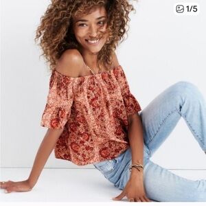 Madewell Silk Off the Shoulder Paisley Top Blouse