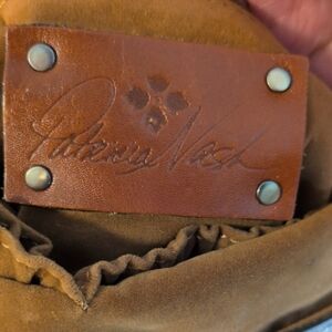 Patricia Nash fab crossbody bag features a stunning floral embossed design in gold on a creamy white jacket. Unique leather and suede interior, it adds a touch of sophistication to any outfit. Perfect for everyday use or special occasions. Crossbody style, has slit pockets on the inside and comes with the PN card and ID number. Gorgeous! in near mint condition, measures 10.5" high 9" w 2" depth strap is 25" long approx but will go to 27".