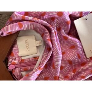 NWT Parker The Ayla Ruched Mock-Neck Satin Midi Dress in Cashmere Rose Women’s size 8. retail $180.