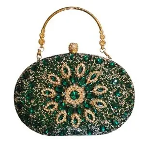 This stunning clutch features a dazzling green and gold design, perfect for any special occasion. Its intricate detailing adds a touch of elegance to your ensemble.