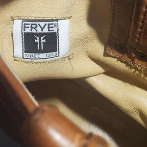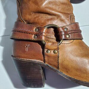 Frye Carmen Harness Boots - these are short (see pics for measurements) and are thick leather (weight is 3lbs 1.7ozs) and will ship in original box (in photos) - I have used these and have also kept them oiled and in excellent condition - no issues - no cuts in leather - shipping included in price - see all pics for condition