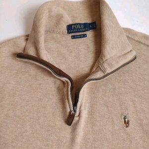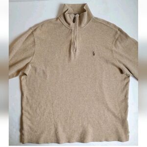 Polo Ralph Lauren Estate Rib Quarter Zip Pullover Cotton Beige Cream Mock Neck L