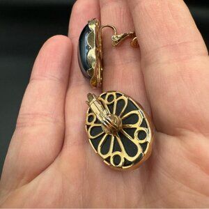 Vintage Mid-Century faux hematite, black cabochon Earrings Sarah Coventry