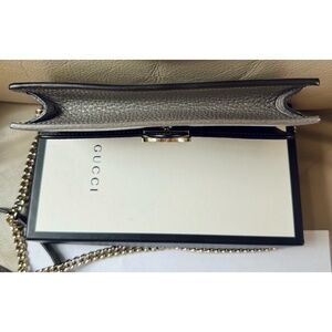 Authentic Gucci Interlocking Dollar Gray Leather Chain Crossbody Clutch Bag