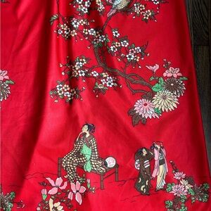 Elegant red maxi dress with floral design. Features short sleeves and a flattering fit. Ideal for any occasion. Missing tag.