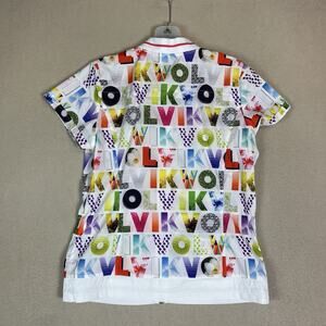 Volvik Jacket Womens 90 White Graphic Print Full Zip Golf Short Sleeve Vented