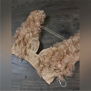 You're the life of the party in this extra-cropped cami from Intimately, featured in an all-tulle design that ruffled to perfection and finished with a sprinkle of sparkles. **Fit:** Extra-cropped, pull-on design **Features:** Sheer tulle fabrication, plunging neckline, sleeveless, gathering tulle detailing, smocked backing, wide underband, tulle strap at back, sparkling embellishments **Why We ❤ It:** Pair with anything from a skirt to jeans for an instant eye-catching moment.
