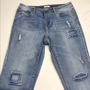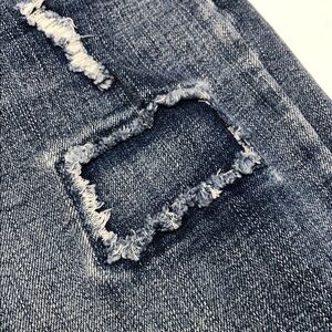 3015 INCREDIBLE FACTORY DISTRESS WITH FACTORY REPAIR !! PREMIUM CONSTRUCTION STRETCH DENIM !! CLASSIC 5-POCKET STYLE !! CONTRASTED DOUBLE STITCHING !! NOT ALTERED !! 9.5” HIGH-RISE !! PREMIUM QUALITY DENIM and FLATTERING TRIBAL fit and style ⭐️