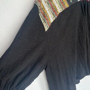 Free People Patchwork Boho Shirt Top Black Multicolor Size M