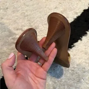 Tory Burch Reva Logo Gold Heeled Sandals Size 8.5
