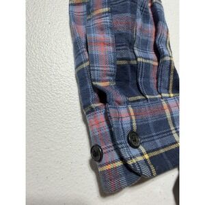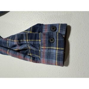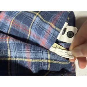 The Vintage Eddie Bauer Plaid Flannel Shirt is a timeless piece perfect for men or women looking for a classic 90s style. Made from cozy flannel fabric with a blue plaid pattern, this shirt features a button front closure and a collared neckline. The size S women's fit is comfortable and regular, making it suitable for everyday wear. With a button accent on the front and pockets for added functionality, this shirt is a versatile addition to any wardrobe.