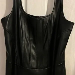 Sleek black mini dress. Sleeveless design. Perfect for a night out.