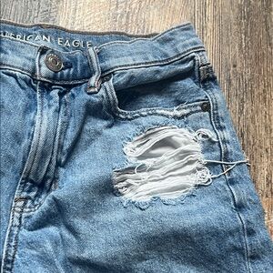 American Eagle Outfitters Blue Distressed Jean Shorts