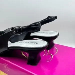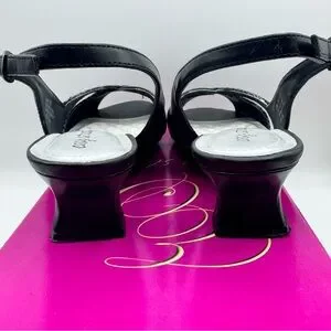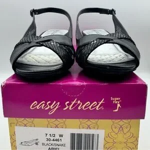 Easy Street Ariel Black Snake Sling Back Block Heels 7.5 WIDE