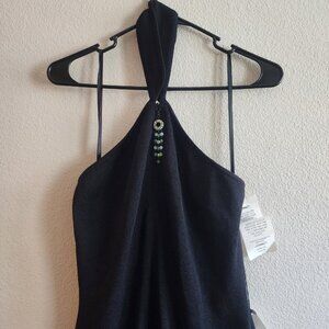 St John Evening Dress Womens 6 Black Halter Beaded Detail Wool Blend Made in USA