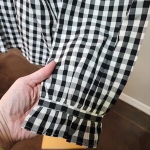 This charming J.Crew Cottage Top in classic black and white gingham is perfect for spring and summer. Made from light and airy 100% organic cotton poplin, it offers both comfort and style.
