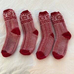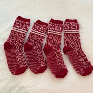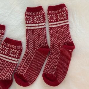 Comfortable, warm and stylish red patterned wool socks. Perfect for adding a pop of color to your outfit.