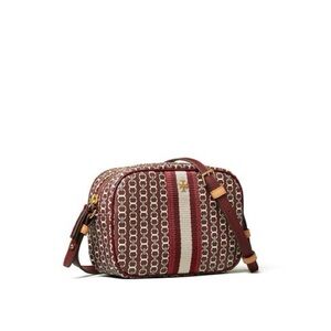 GEMINI LINK CANVAS MINI BAG from Tory Burch in great lightly used condition, no defects. Made of coated canvas for a matte finish, with a stripe down the middle and an all-over chain print: a graphic abstraction of the iconic double-T logo. Adjustable strap.