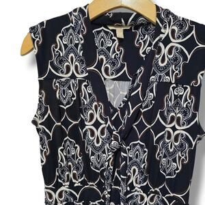 Banana Republic Women's Navy tie neck sleeveless abstract print dress - small